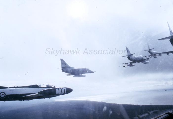 OCT 1956: Sea Venom, Gannet, and Sycamore Helicopters. Circa 1960: Sea Venoms, Gannets, Vampires, Fireflies, Dakotas and Autocars. DEC 1968: Vampires, and Sea Venoms. DEC 1968: Douglas A-4G Skyhawk DEC 1968: Douglas TA-4G Skyhawk 1970: MB-326 Macchi Trainers replace the Sea Venoms and Vampires.
