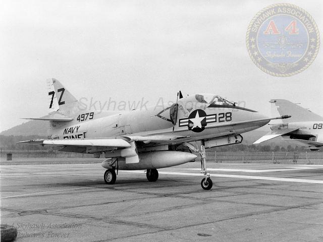 Webmaster note: Prior to 1970, reserve aircraft belonged to the local NARTU or Reserve Naval Air Station. Except for those squadrons on active duty, as in Korea, no reserve squadron "owned" their aircraft, as they were assigned to the NARTU/Station. In 1970, during that reorganization of the reserves into the "Reserve Force" concept, each new squadron was made independent of NARTU (later called NAR), and assigned either to CVWR-20 or CVWR-30. All squadrons were then made in the image of active duty units, with the reserve unit Commanding Officer owning the aircraft and reporting to the CAG. Formation of A-4B Weymouth aircraft. Gary Verver Collection. MAY65: A-4A 139933 from NARTD, NAS South Weymouth, MA, at takoff after visiting NAS Willow Grove, PA, in May of 1965. Photo by Ron Picciani. JUL66: NAS South Weymouth -- A-4B 7Z-30 BuNo 144878 with a "Huffer" pod. Gary Verver Collection. JUL66: BuNo.144907, A-4B 7Z-20 NAS South Weymouth. Gary Verver Collection. JUL66: BuNo.144907, A-4B 7Z-20 NAS South Weymouth. Over the Golden Gate. Gary Verver Collection. JUL66:NAS So. Weymouth -- A-4B 7Z-26 BuNo 144889. Gary Verver Collection. BuNo 142948 and A-4B 7Z-28 BuNo 142726. JUL66: NAS So. Weymouth -- A-4B 7Z-27 BuNo.144891. Gary Verver Collection. JUL66: NAS So. Weymouth -- A-4B 7Z-27 BuNo.144891. Gary Verver Collection. NAS So. Weymouth Skyhawk Line. Left to right A-4B 7Z-28 BuNo 142726, A-4B 7Z-20 144907, A-4B 7Z-26 144889, can't read the rest of them. Gary Verver Collection. BuNo.144907, NAS So. Weymouth -- A-4B 7Z-20. Gary Verver Collection. Unidentified A-4B out of NAS South Weymouth. A-4B 7Z-29 being refueled. Gary Verver Collection. 29SEP70: NARF So. Weymouth Skyhawk BuNo 144979, 7Z-28, parked on the flight-line next to F-4B Phantom BuNo 150996. R.W. Harrison. Off-Duty Photos No info yet. |