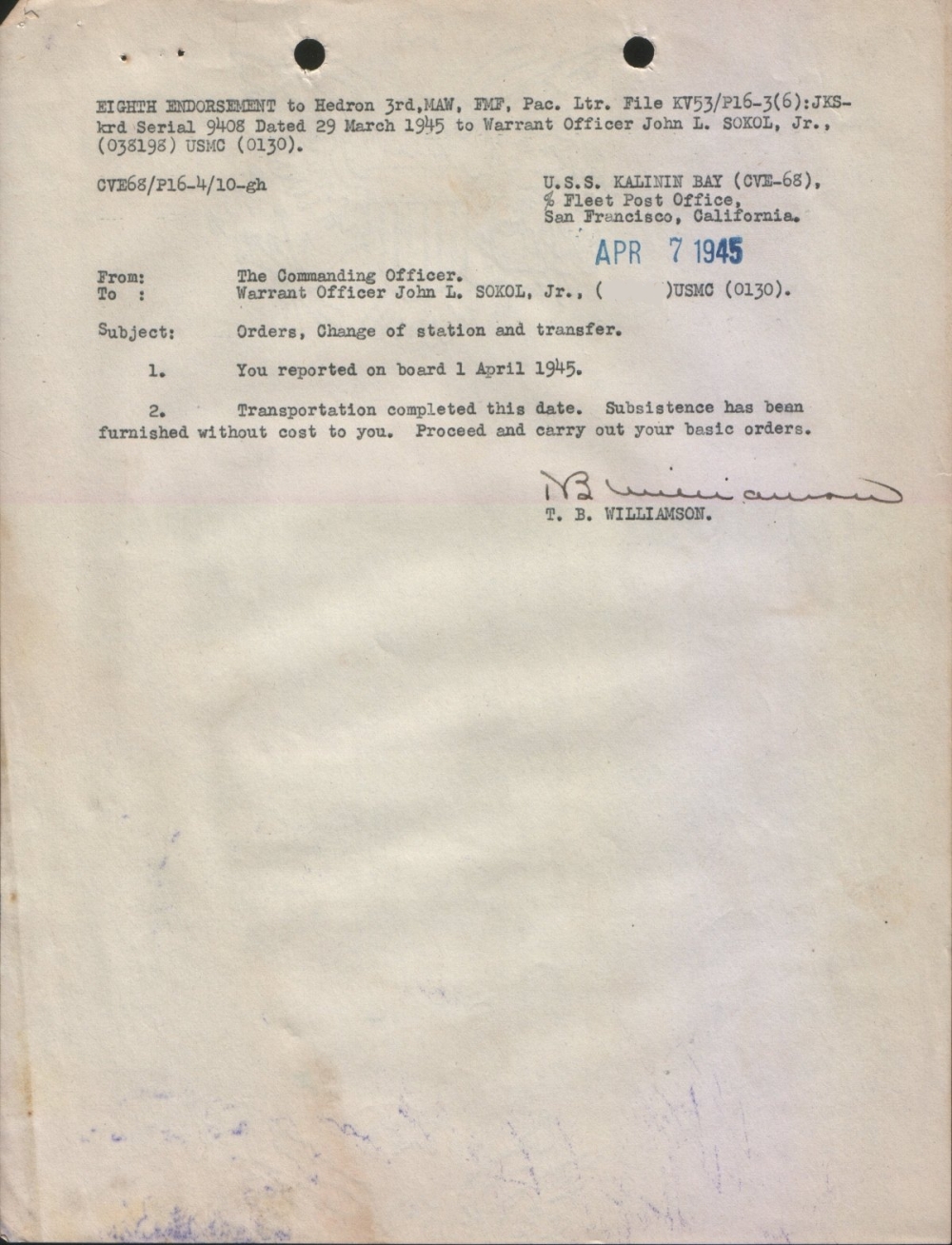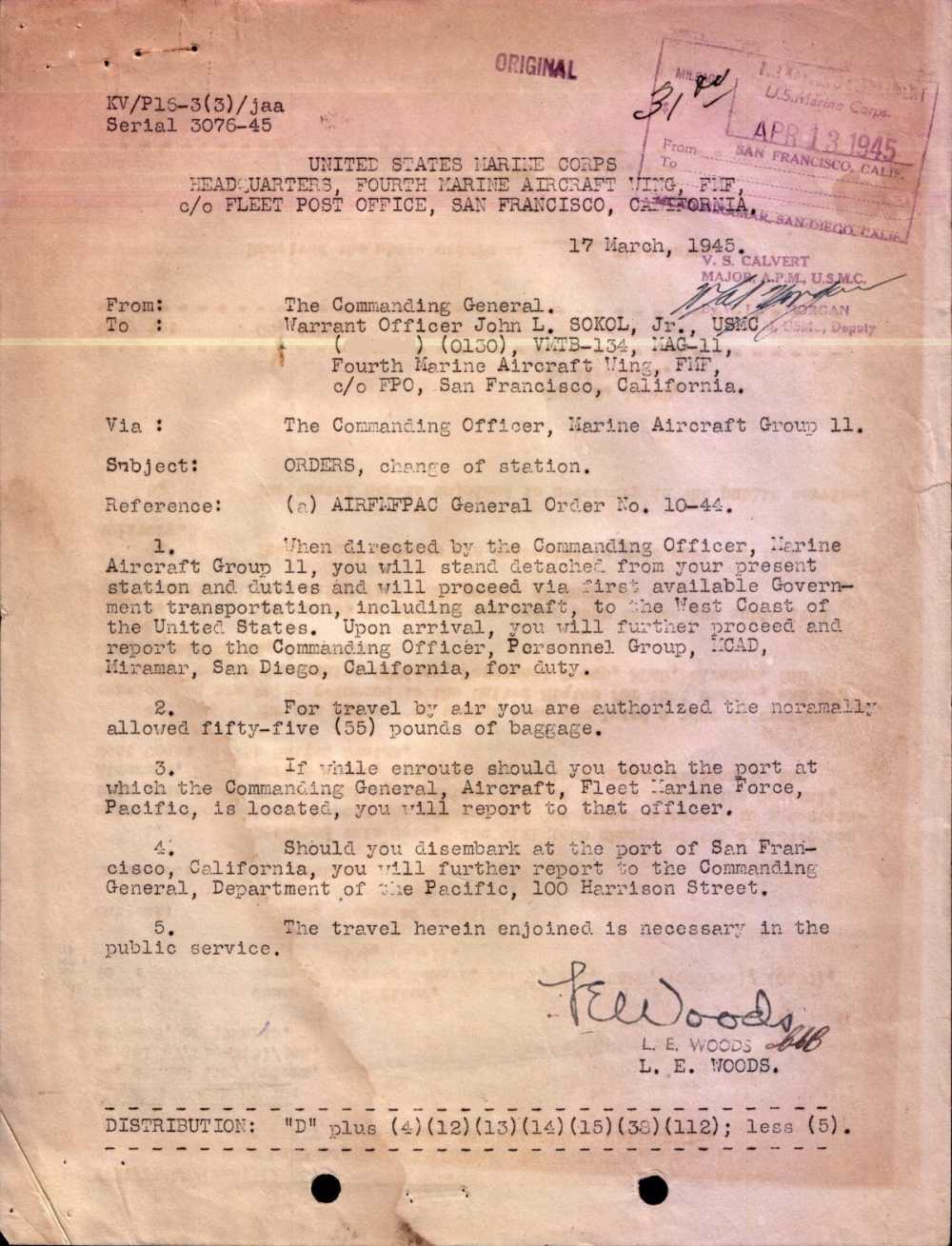 Description: VMTB-134 - WO John L. Sokol Jr. - Orders