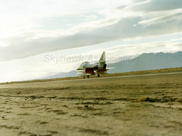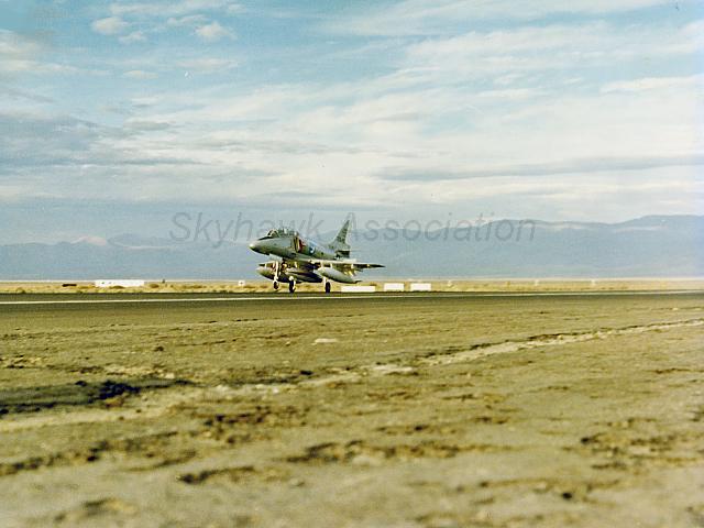 September 25, 1962: Cdr. Shelley B. Pittman, 40, ejected safely when his A4D flamed out during maneuvers over the Salton Sea Gunnery Range yesterday. The wreckage fell in an open field about three miles NW of Westmoreland, one mile from U.S. 99. The Pasadena Independent, Wednesday, 26 September 1962. Cdr. Shelley B. Pittman, 40, VX-5 Weapons Officer ejected safely from A4D-2N BuNo 145066, Mystify 2, after the fuselage fuel cell ruptured and the engine flamed out. The flight mission called for glide bombing on target 103A in the vicinity of NAF El Centro, CA, and on target "Candid Camera" near Yuma, AZ. As Mystify 2 accompanied by Mystify 8 passed 5 miles to the east of Thermal Vortac Mystify 8 noticed fuel streaming from the lead at 1345 PDT. Further examination noted it was streaming heavily from the centerline bomb rack and stbd wing root. At that time Mystify 2 reported 6,700 lbs. of fuel. The flight commenced descent to get below the scattered clouds in the El Centro area that had a base of 6,000 feet. They contacted El Centro tower and at that time Mystify 2 reported 4,000 lbs. of fuel, a loss of 1,300 lbs. in less than 2 minutes. Immediately thereafter the fuel reading dropped to 1,000 lbs. and the engine flamed out at about 15,000 feet. After three unsuccessful relight attempts the pilot decided to eject. The aircraft crashed about 1.5 miles S. of the south shore of the Salton Sea and 1 one mile east of U.S. 99. USCG UF-1G Albatross c/n G-307, USAF s/n 51-7226, USCG s/n 7226 supported the rescue as did VX-5 A4D-2N Skyhawk BuNo 145112, Mystify 8. AAR (page 11, page 12, page 13,) 25 September 1962. October 14, 1965: February 9, 1970: Maj. Jerry N. Hoblit (USAF) ejected safely after a ZAP rocket hung up in the canister and FODed the engine when it blew up during ripple fire of four rockets during a flight over B Range, NAF China Lake, CA. Jerry ejected and landed in a lava flow -- but fortunately he "found" a small patch of sand and avoided being shredded upon landing. From Raymond H. Clary Jr. |