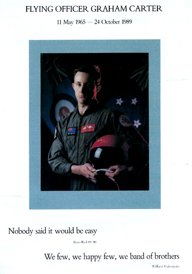 Flying Officer Graham Carter - 24 OCT 1989 - BuNo 157913, NZ-6210 Flight Officer Graham Carter's funeral was held in 75 SQN's hangar on 27 OCT 1989.