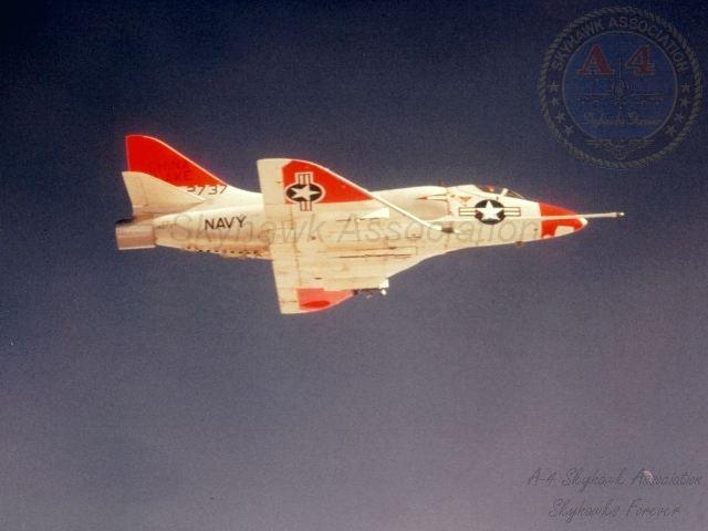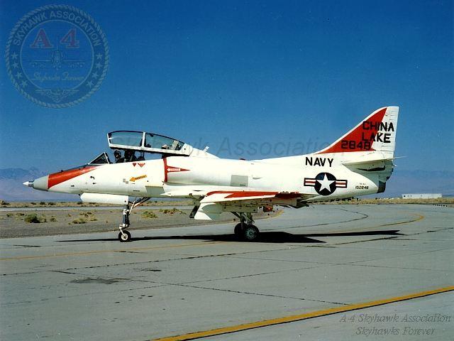NWC: NWC China Lake TA-4F Skyhawk BuNo 154332 with HARM seeker nose in-flight. Official U.S. Navy, Gary Verver Collection