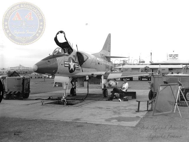 07 JUN 1963: A-4E BuNo 149969 Shrike GM28 and pilot LT Tony Tambini, JFK demo. Photo from Tony Tambini, via Gary Verver.