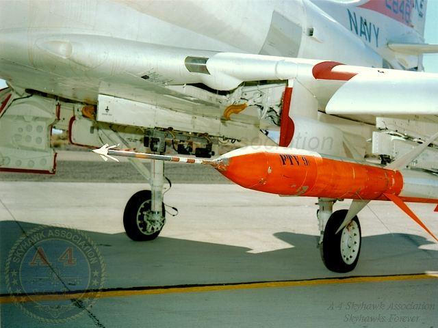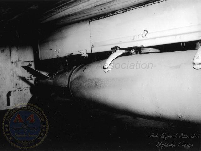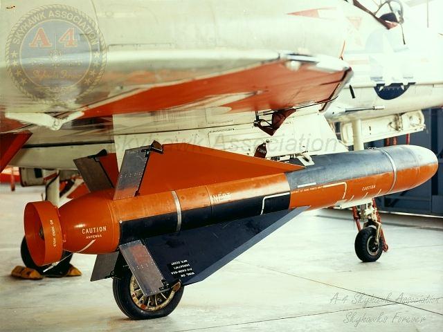 07JUN1963: A-4B 144925 on the China Lake hot line with three Sadeye cluster bombs. Close-up of the Sadeye cluster bomb. Navy photos.
