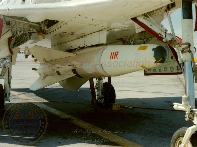 01OCT82: Left side close-up view of China Lake Skyhawk BuNo 158169 Sidearm missile parked on the flight line. Left front close-up view of China Lake Skyhawk BuNo 158169 Sidearm missile parked on the flight line. Left side close-up view of China Lake Skyhawk BuNo 158169 pilot Sidearm missile parked on the flight line. Official U.S. Navy photos, G. Verver collection.