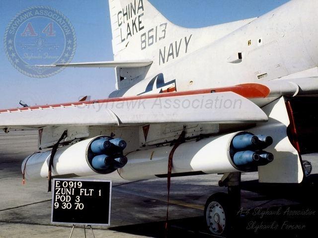 1980: China Lake Skyhawk BuNo 152102 parked on the Hot Line with ZUNI 5" FFAR launchers. Prototype A-4F Skyhawk BuNo 152101 assigned to the China Lake Naval Air Facility. C.T. Robbins.