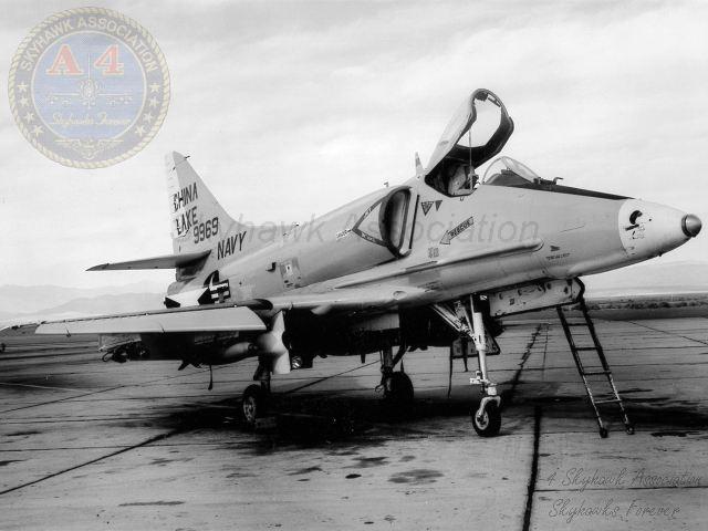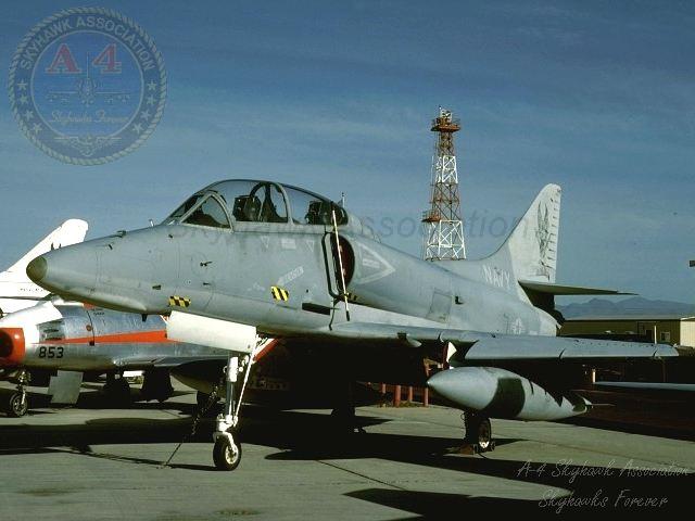 NOV89: NTA-4F Skyhawk BuNo 152102 parked on the ramp. B. Niedermeyer via Tailhook Association.