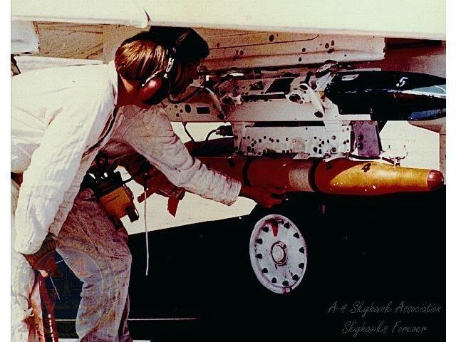1980: Right side view of Skyhawk BuNo 154172 parked on the Hot Line with ZUNI launchers. Photo by C.T. Robbins, G. Verver collection.