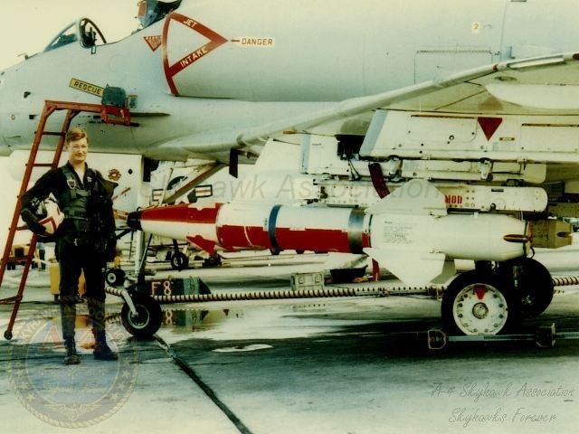 1963: A-4C BuNo 147680, Shrike missile & LCDR Jack Sickel circa August 1963. Photo is from John Sickel, Jr.
