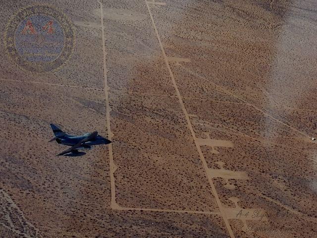 JAN 1996: Pic1137826 and unknown A-4 fuselages at China Lake Area R. Pic2 overhead shot. 137826 in Area R. AIRFOTO © Joe Cupido.