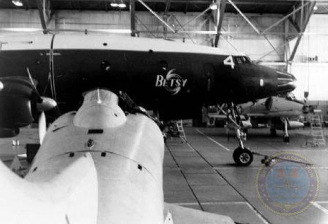 22SEP61: 085 in the newly built hangar #3 with a Walleye shape on the stbd. wing and a good look at the starter probe. Navy photo.