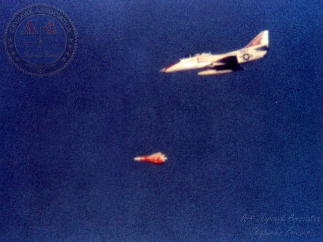04APR62: Pic1 = 3 shot sequence of a Mk-46 torpedo being dropped from A4D-1 137818, the photos were taken by Tony Tambini from BuNo 13993. Shot2; Shot 3.