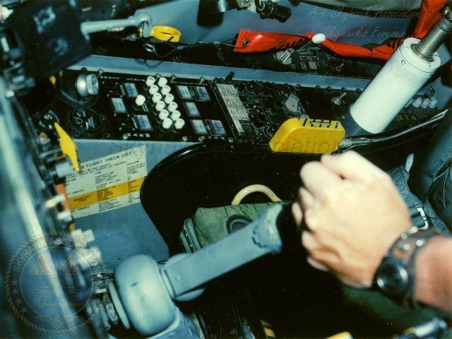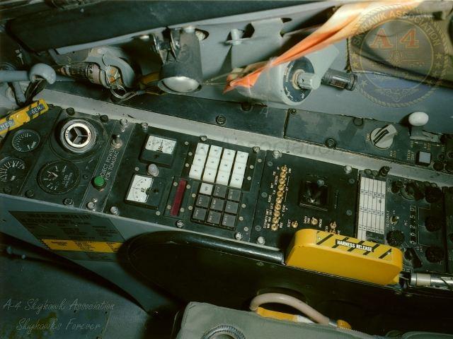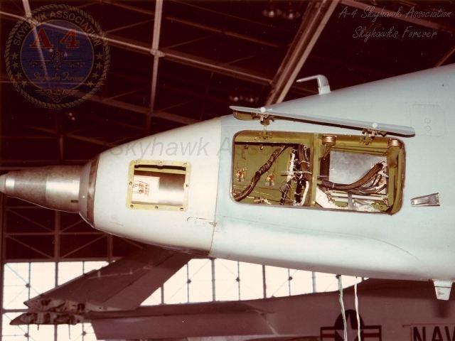 28JUL83: Close-up right front view of China Lake Skyhawk BuNo 152848 HARM missile seeker nose "KNOZY". Close-up No.2 Close-up No.3 Cockpit right console view of China Lake Skyhawk BuNo 152848 HARM missile seeker nose "KNOZY". cockpit instrument panel view of China Lake Skyhawk BuNo 152848 HARM missile seeker nose "KNOZY". Cockpit view of China Lake Skyhawk BuNo 152848 HARM missile seeker nose "KNOZY". Navy photos.