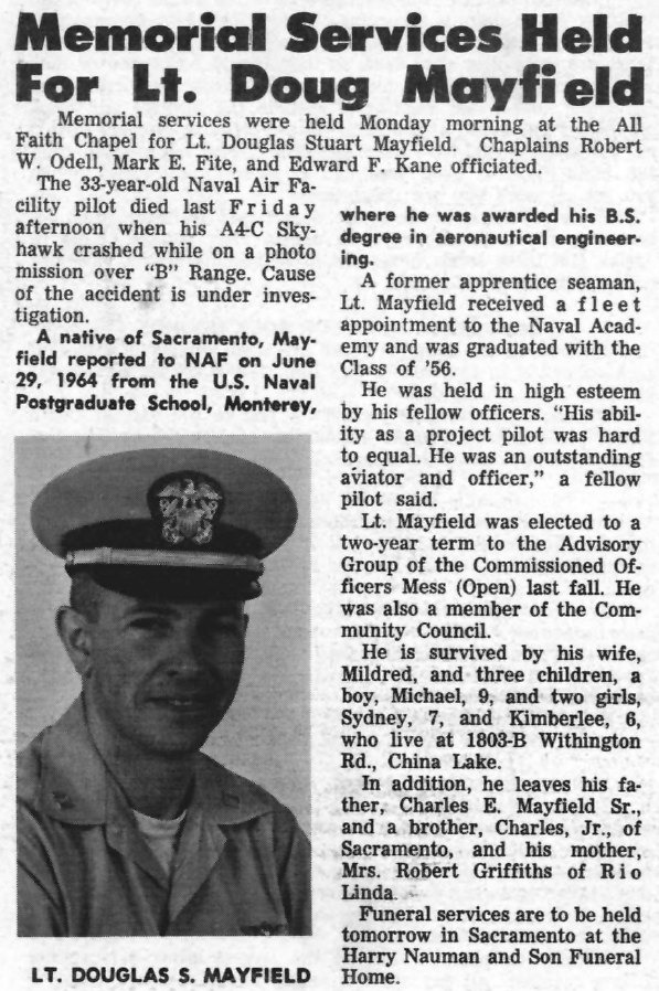 13MAR63: China Lake Skyhawk BuNo 147680 and Shrike test pilot LCDR Jack Sickel. Navy photo from J.A. Sickel Jr.