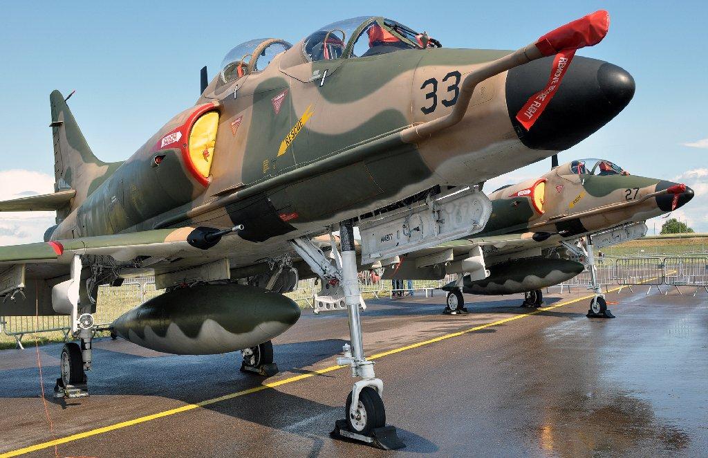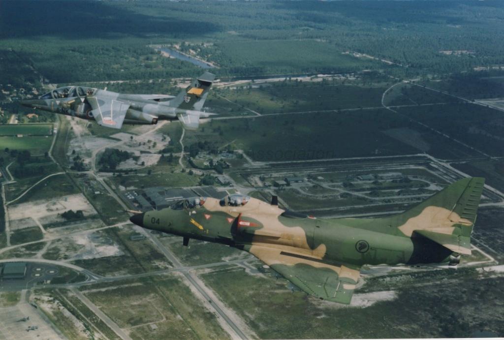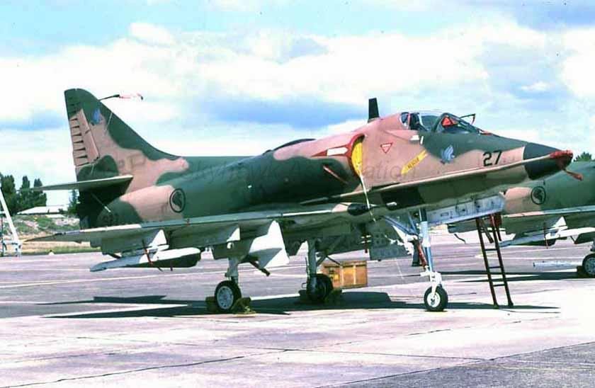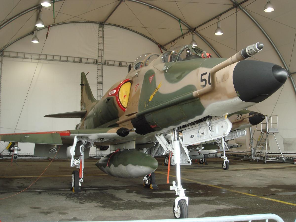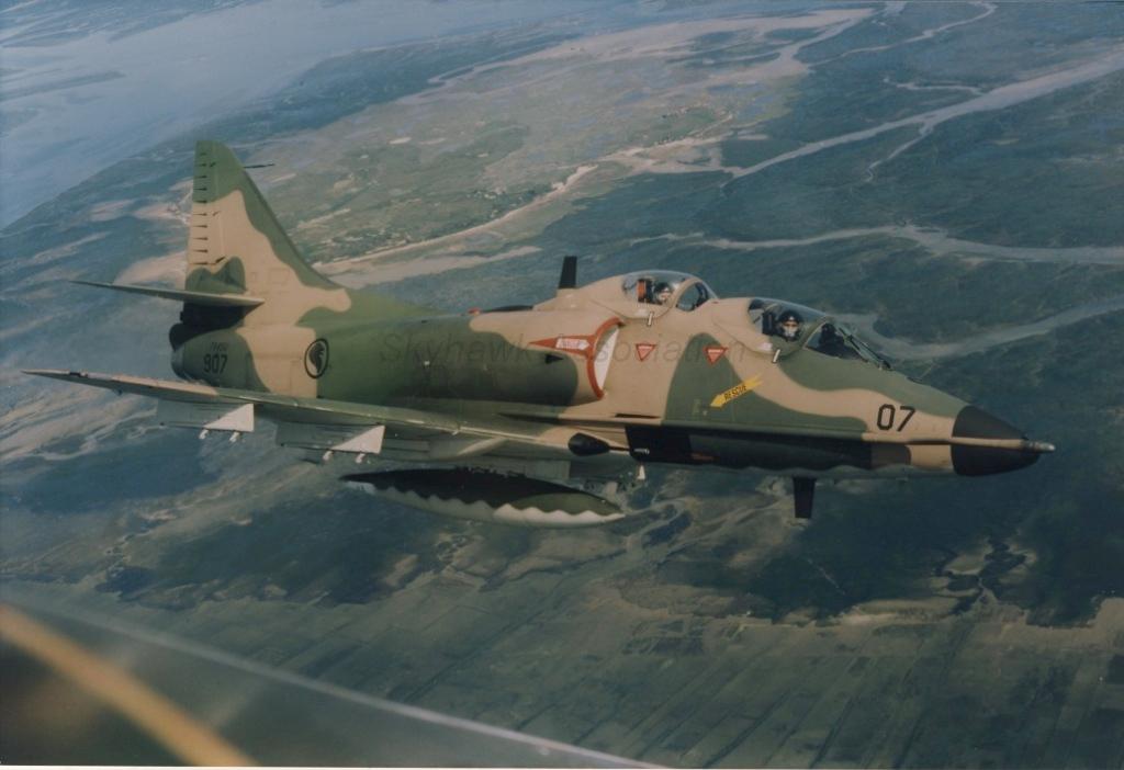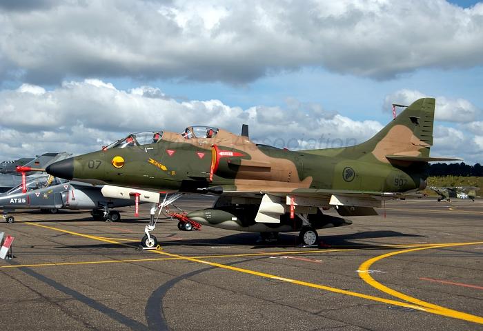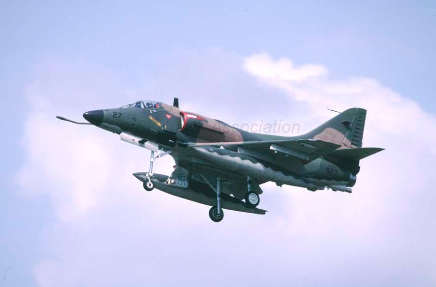 Events 1972: RSAF begins its purchase of A-4B Skyhawks. 1973: Two Skyhawk squadrons are formed, 142 Squadron, the Gryphon, at Tengah AB; and 143 Squadron, the Phoenix, at Changi AB. 1974: When I was a flight instuctor in VT-24 (Chase Field, Beeville, Texas) in 1974 we had 5-6 students from the Singapore AF going through transition training. I had the CO, Gary Yeo, as one of my students. They showed me pictures of the single- and two-seat A-4s waiting for them back home. 1997: In 1998, the RSAF decided to base a detachment of Super Skyhawks overseas for its advanced pilot training program. An agreement was reached with the French government for hosting the RSAF training at Cazaux AB in the south of France. Since then, about 18 Skyhawks call Cazaux home. In 1997 the 143 Sqn was dis-established and its aircraft were re-assigned to the 150 Sqn. The 150 had previously flown the SIAI-Marchetti SF.260. With its new aircraft, the 150 was assigned the role of advanced jet training and thus became the unit to deploy to France. 23 JUN 2005: Sighted in France during air show at Cazaux AB, France: In the hangar: 902 148483 Static display: 950 145033 Flightline: 905 148529 Y2012: Estimation for 150 Squadron flying in France as an advanced training squadron utilizing Skyhawks is 4 A-4SU and 7 TA-4SU aircraft. |