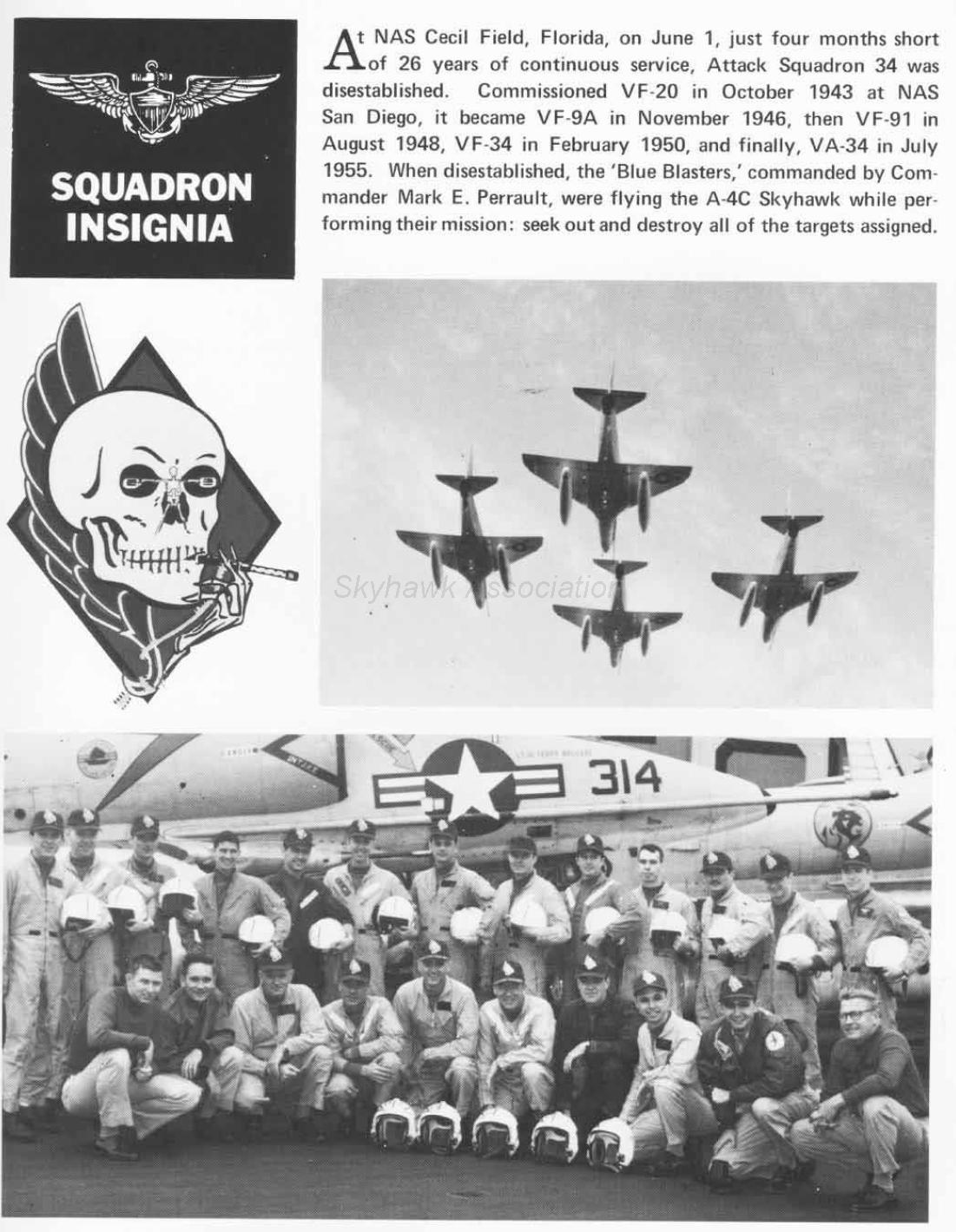 When VA-34 was reestablished in January 1970, it adopted the "Trap or Die" patch and Blue Blaster nickname used by the previous VA-34.