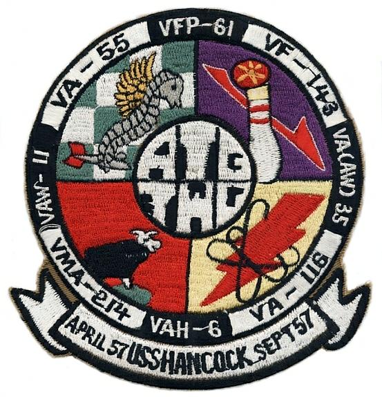 Events February 15, 1943: VGS-30 was disestablished and personnel were used to form VT-5 and VF-1. March 1943: VT-5 was assigned the Grumman TBF-1 Avenger. July 6 to 24, 1943: VT-5 departed Norfolk embarked in USS Yorktown CV 10, enroute to Hawaii via the Panama Canal. August 31, 1943: Embarked in USS Yorktown CV 10, VT-5 participated in a raid on Marcus Island. October 5 and 6, 1943: VT-5 participated in a raid on Wake Island. November through December 1943: VT-5 supported landings on Makin and Tarawa, in the Gilberts, and flew strikes against Kwajalein in the Marshalls. January 1944: VT-5 provided air support for the invasion of the Marshalls. February 16 to 17, 1944: VT-5 aircraft flew strikes against the Japanese stronghold of Truk. February 22, 1944: VT-5 participated in a raid on the Marianas, striking targets on Saipan. March 30 and 31, 1944: VT-5 aircraft struck ships and facilities at Palau in the Caroline Islands. The strike on 30 March was the first time the squadron's TBFs used torpedoes in combat. April 21 to 23, 1944: VT-5 flew strikes against targets on Wake Island and Hollandia in New Guinea. These operations were in support of the landings at Hollandia by General Douglas MacArthur's forces. April 29, and 30, 1944: VT-5 participated in another strike operation against Truk. April 30, 1944: VT-5's commanding officer, LCdr. Dick Upson, failed to return from a SAR mission to locate a downed pilot. May 14, 1944: Following a ten-month combat tour beginning in August 1943, Air Group 5 was relieved aboard USS Yorktown CV 10, by Air Group 1 and returned to CONUS to reform on 25 June 1944. February 07 to 13 February 1945: VT-5 traveled from NAS Alameda to Hawaii, aboard the USS Franklin (CV 13). March 19, 1945: VT-5 was preparing to launch its aircraft for an attack against the city of Kobe, Japan, when the USS Franklin CV 13, was hit by two enemy bombs from a Japanese aircraft. Fires were ignited on the second and third decks from the first bomb and the second triggered munitions on the carrier. All VT-5's aircraft on the flight and hangar deck were destroyed by the ensuing explosions and fire. The damage was one of the most extensive experienced by an Essex class carrier during World War II. A total of 724 men were killed and 265 wounded. VT-5's commanding officer, LCdr Edmands, was lost in the action. All surviving VT-5 personnel were transferred from Franklin and returned to CONUS. November 15, 1946: VT-5 redesignated as Attack Squadron SIX A (VA-6A). August 16 1948: VA-6A redesignated Attack Squadron FIFTY FIVE (VA-55). June 1949: VA-55 was assigned the Douglas AD-1 Skyraider. July 3, 1950: Participated in the first combat strikes by carrier aircraft against the North Koreans. The squadron flew its AD-4 Skyraiders on strikes against airfields, supply lines and transportation facilities in and around Pyongyang, North Korea. This was also the first use of the AD Skyraider in combat. September 12, 1950: Preinvasion strikes against targets in and around Inchon and Seoul, Korea, began in preparation for the landing at Inchon. September 15, 1950: Strikes were flown to support the landings at Inchon. May 16, 1951: All VA-55 personnel, except 16 officers and 5 enlisted men, embarked USNS General William Weigel (TAP 119) enroute to Japan for duty with Air Group 19 aboard USS Princeton CV 37. The remainder of the personnel were airlifted to Japan on 17 May. May 29, 1951: VA-55 embarked on USS Princeton CV 37, replaced VA-195 in Air Group 19, and proceeded to Korea for combat operations. March 1954: The squadron was deployed to the Western Pacific aboard USS Essex (CVA 9) when the carrier was ordered to operate off the coast of Vietnam during the Viet Minh's assault against the French at Dien Bien Phu. July through September 1957: Operated intermittently off the coast of Taiwan due to the build-up of Chinese Communist forces and the threat of a possible invasion of Taiwan or its offshore islands. November 1957: The War horses were assigned the North American FJ-4B Fury. September 1958: Operated in the Formosa Straits during the Chinese Communist shelling of Quemoy and Matsu. March 1959: VA-55 was assigned the Douglas A4D-2 / A-4B Skyhawk. August 10, 1959: Lt Carlos G. Font . . . 1014 Commenced operating aircraft for carrier qualifications. 1015 When the starboard catapult failed to fire properly, A4D BUAER #142951 of VA-55, crashed into the sea off the starboard bow and sank in 660 fathoms of water. 1016 Ceased operating aircraft. 1025 The pilot of the aircraft LT Carlos G. Font was recovered by rescue helicopter and returned on board. Report of injuries to follow. 1227 Received report of in the case of LT C.G. Font. Diagnosis: simple fracture of the middle phalanx of the left little finger, contusion of the left knee and over anterior calf. Treatment administered by the medical officer. Disposition: Admitted to ward and placed on binnacle list. USS Oriskany deck log, Tuesday, 1 September 1959. June 9, 1960: Cdr. Samuel J. Brocato (VA-55 XO) was lost at sea when his aircraft (A4D-2 BuNo 145018) was struck by a drop tank from a VF-51 F4D Skyray. The units were practicing for an airshow for President Eisenhower during his visit to Formosa. The air group was conducting an aerial demonstration consisting of four plane divisions from four squadrons, The F4D's lead off by firing rockets from Aero 6A pods followed by A4D's with 250-pound bombs and then AD's and A4D's with rockets. The F4D's fired their rockets followed by the first A4D division and each division then made a climbing left turn to reverse course. The A4D's proceeded to close the interval so at the completion of the turn they were in a parade formation 300 yards astern and 150 feet below the F4D's. At 2800 feet and 325 knots the following radio transmissions broke the silence: Stand by to drop hung ordnance; A4D's are behind us; Stand by to drop pods; Stand by -- Drop. Before a warning could be shouted the F4D's dropped their emp