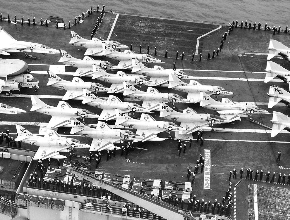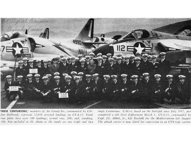 Departure & Return - - - - - - - - Air Wing - Carrier - Aircraft - - Area of Operations: 12-15-57 to 07-22-57 - CVG-1 - - CVA 59 - - F9F-8B - Mediterranean 06-09-58 to 08-08-58 - ATG-181 - CVA 11 - - F9F-8B - NorLant 08-04-60 to 02-17-61 - CVG-6 - - CVA 11 - - A4D-2- - Mediterranean 08-03-61 to 03-01-62 - CVG-6 - - CVA 11 - - A4D-2- - Mediterranean 08-03-62 to 10-11-62 - CVG-6 - - CVAN 65- - A4D-2N - Mediterranean 10-19-62 to 12-03-62 - CVG-6 - - CVAN-65- - A4D-2N - Caribbean 02-06-63 to 09-04-63 - CVG-6 - - CVAN 65- - A-4C - - Mediterranean 02-08-64 to 10-03-64 - CVW-6 - - CVAN 65- - A-4C - - Mediterranean -World Cruise 10-26-65 to 06-21-66 - CVW-9 - - CVAN 65- - A-4C - - WestPac-Vietnam 01-26-67 to 08-25-67 - CVW-21- - CVA 31 - - A-4C - - WestPac-Vietnam 04-30-68 to 01-27-69 - CVW-7 - - CVA 62 - - A-4C - - Mediterranean |