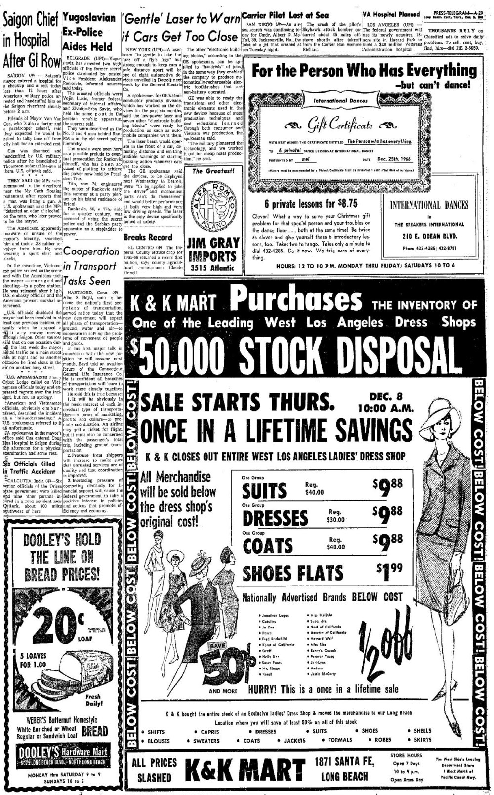 December 2, 1965 December 11, 1965 December 21, 1965 December 24, 1965 December 26 to December 30, 1965 January 1 to January 2, 1966 January 4 to January 14, 1966 February 4, 1966 February 19, 1966 February 23, 1966 March 27 to March 28, 1966 March 30 to March 31, 1966 April 2, 1966 April 11, 1966 April 29, 1966 February 28, 1967 March 7, 1967 March 11, 1967 March 13, 1967 March 16, 1967 March 20, to March 21, 1967 April 29, to May 1, 1967 May 16, to May 18, 1967 |