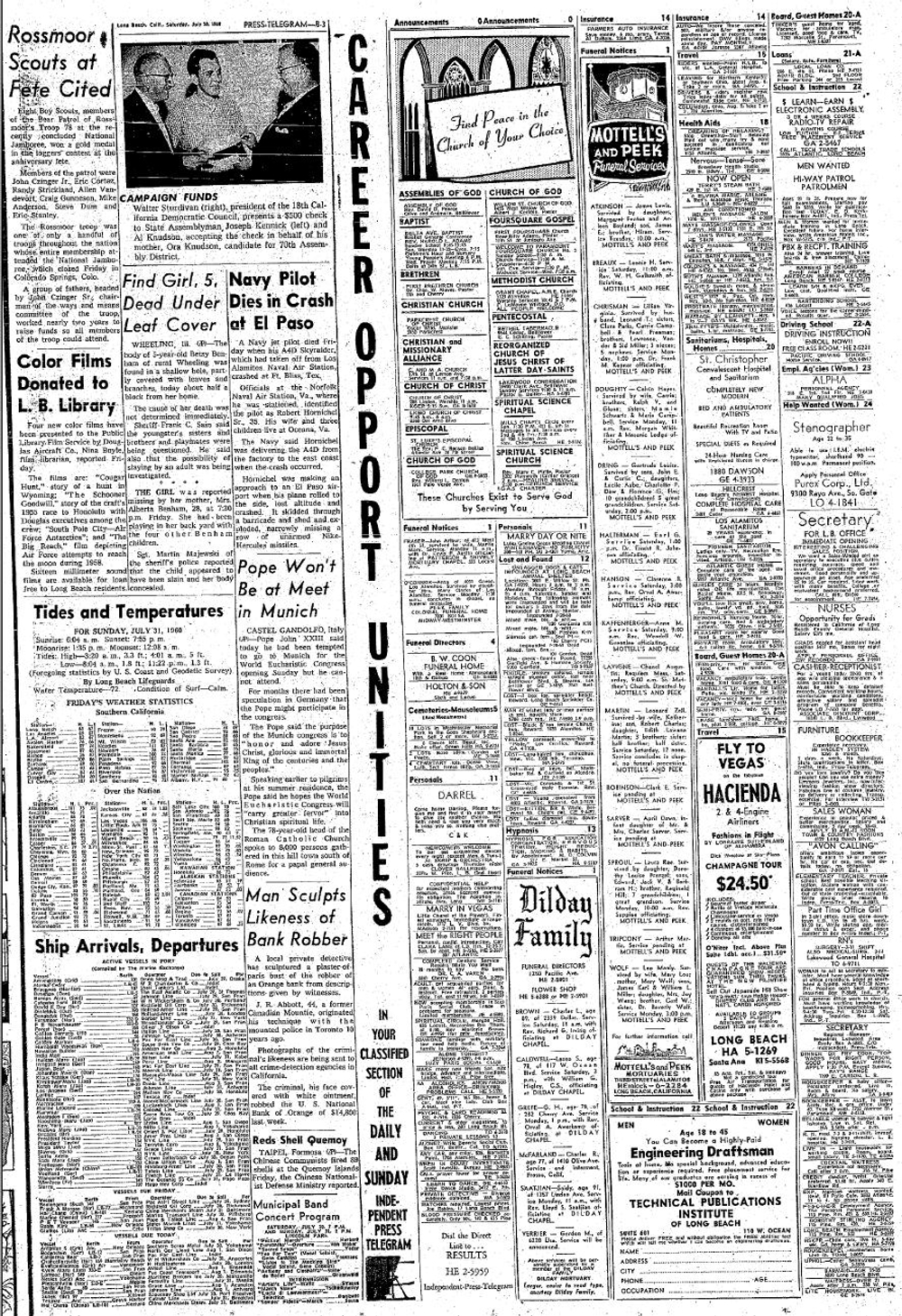Events August 8, 1960: Chief Robert Hornichel Sr. of Oceana (NAS Norfolk) was killed when his A-4D-2N BuNo 147725 crashed at Ft Bliss, TX while on a delivery flight from the factory to the east coast. Hornichel was making an approach to an El Paso airport when his plane rolled to the side, lost altitude, crashed and skidded through a barricade and shed and exploded. |