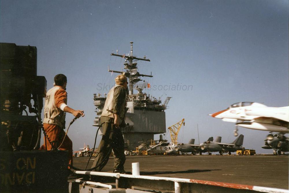 1981: Ford Lauer VT-24 Plane Captain. VT-24 Plane Captain Ford Lauer, fueling a TA-4J drop tank. Pictures from Ford J. Lauer III.