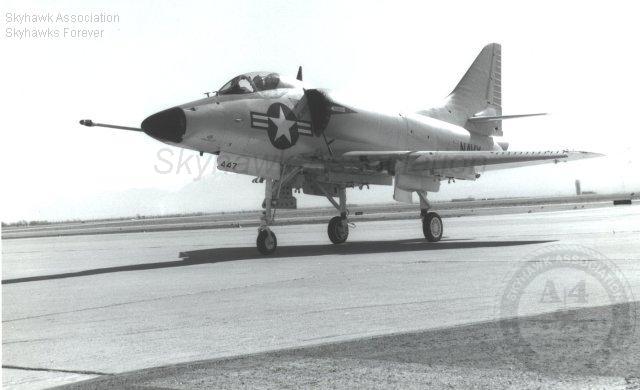 The TA-4F in the background is BuNo 154301 and is the 2,000th Skyhawk built. Photo from James Stegman